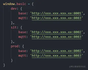 如上差别不大,不过在 .env.dev , .env.sit , .env.prod 这三个环境中,分别写入对应的环境,就不用动态的去引入ip和端口号了。