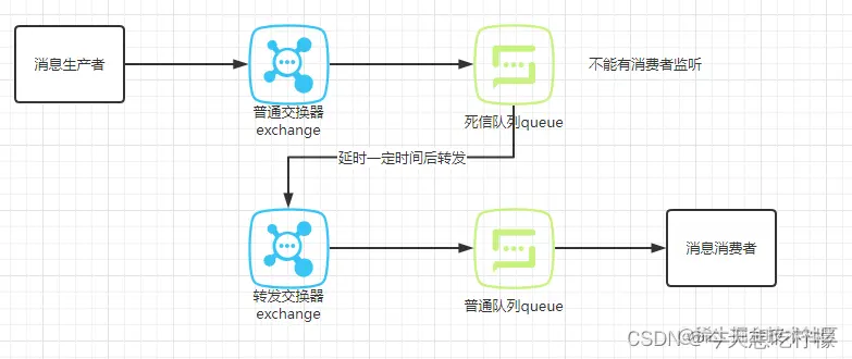 rabbitmq提供了一种Dead Letter Exchanges,死信交换,它的作用就是“死信”的重发布。也就是当消息过期时,消息并不是简单丢弃,而是重新投递到一个交换器中进行新的消费。rabbitmq给我们提供了两个参数用于重发布。分别是x-dead-letter-exchange这个是重新投递的交换器,x-dead-letter-routing-key这个是重新投递的路由,可以指向到具体的队列,方便我们做监听。
