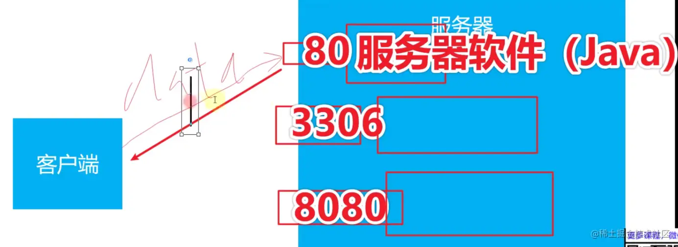 这里有个概念就是端口号,我们可以把他简单理解为营业厅的办事窗口,比如80、3306、8080端口,这些端口具有监听功能,只要有客户端向对应的端口发送了请求,那么它就可以感知到