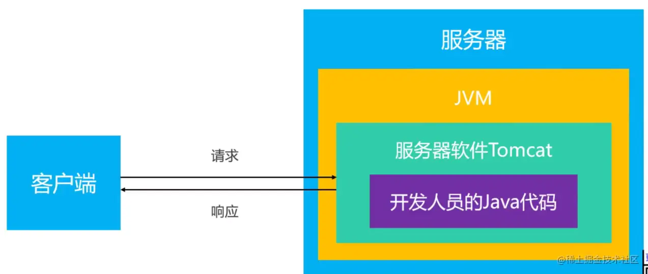 客户端发送请求到服务器,我们想要去执行后台代码的话,前提条件就是必须要先安装一个服务器软件跑在一个端口上,比如Tomcat(这是Java很出名的一个服务器软件,免费且开源),然后利用Tomcat将我们的项目代码部署上去,下次客户端请求来的时候我们才能够执行相关代码并返回正确的响应回去