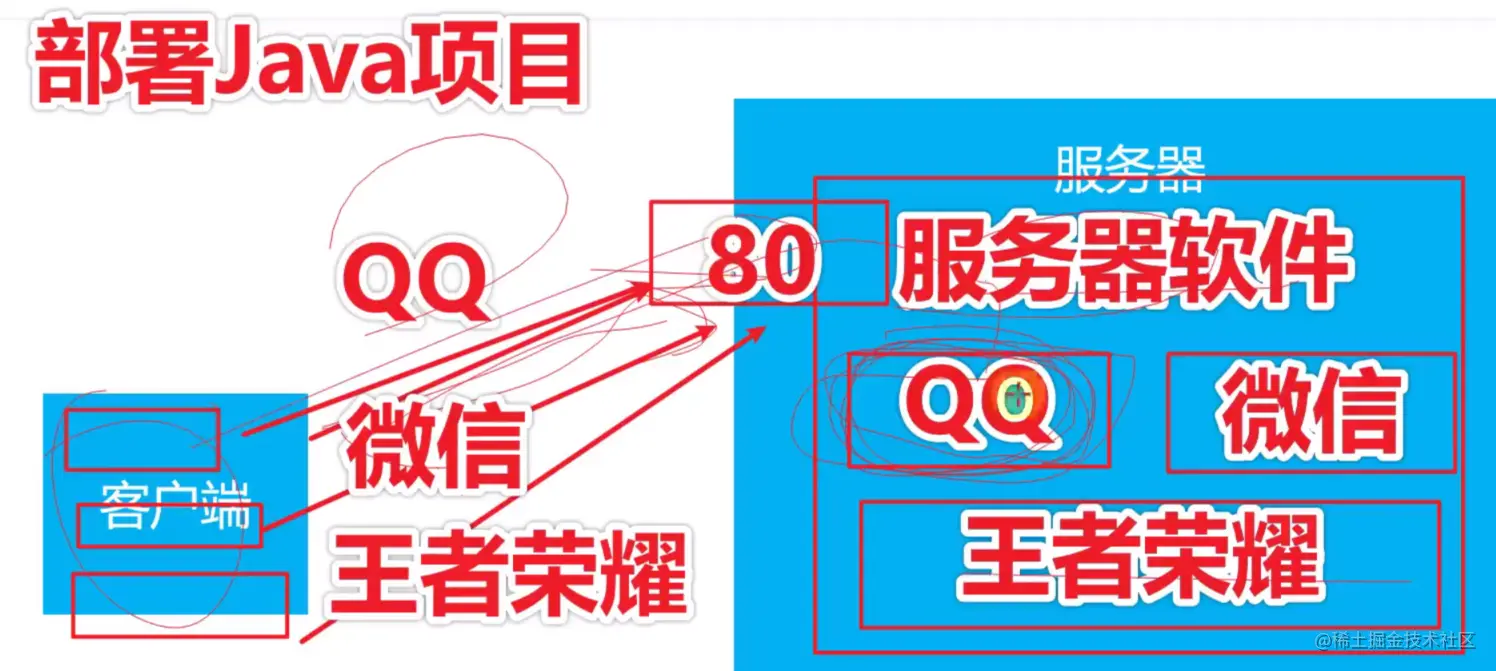 举个例子,一个客户端中可能有多个应用,比如说有qq、微信、王者荣耀,这三个应用可以都向服务器同一个端口号发送请求,当然也会被同一个服务器软件监听到,但是该服务器软件肯定部署了这三个应用所对应的项目,软件会根据请求的消息去执行对应项目中的代码