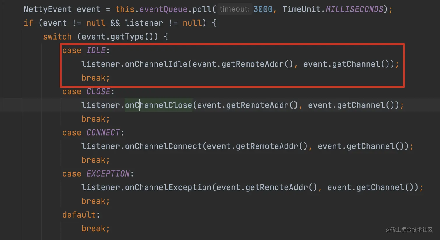 // IdleStateHandler会通过pipeline传递userEventTriggered()方法,