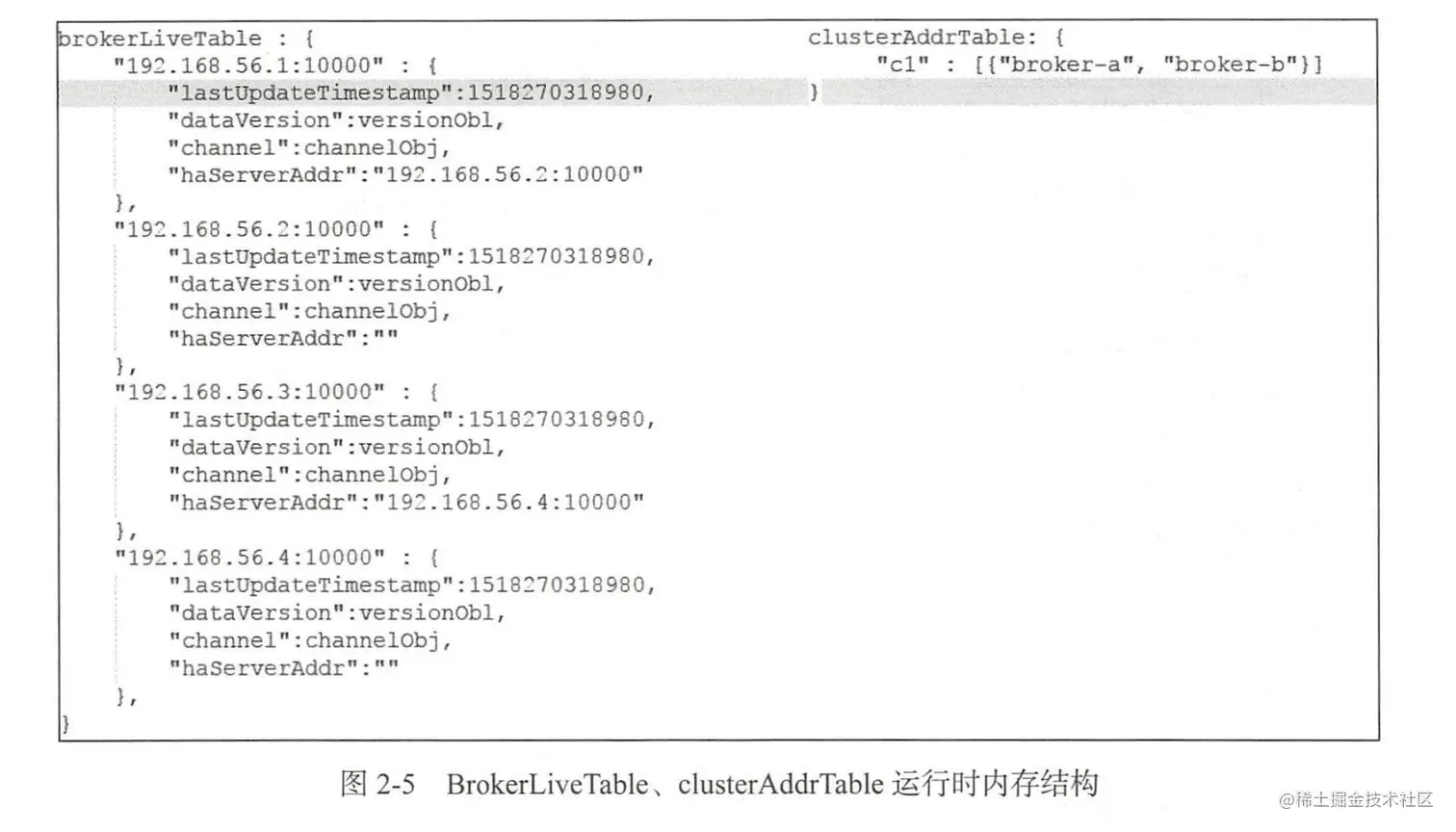 比如 brokerName、所属集群名称、broker地址、brokerId、自身管理的所有topic信息