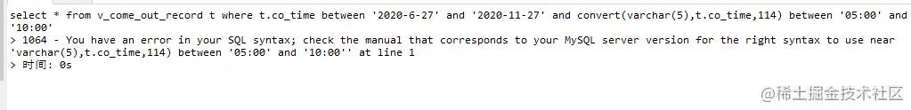 select * from v_come_out_record t where t.co_time between '2020-6-27' and '2020-11-27' and convert(varchar(5),t.co_time,114) between '05:00' and '10:00'
