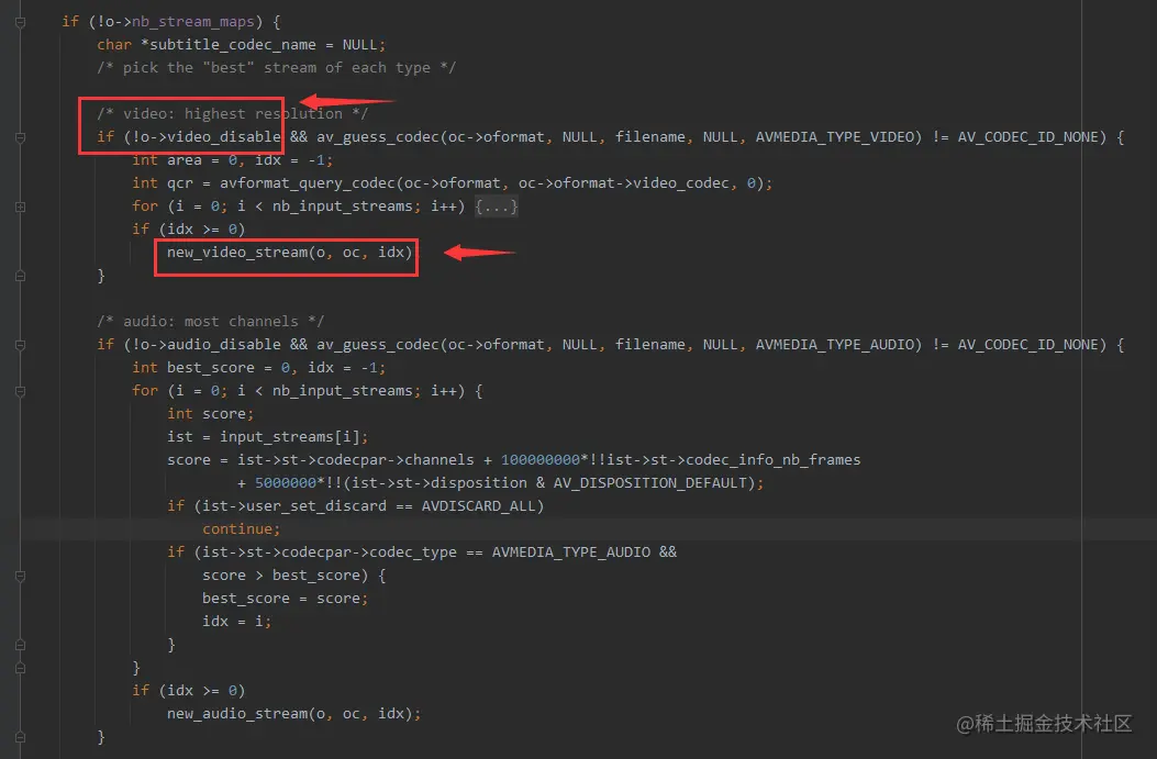 可以看到,o->video_disable 控制了 new_video_stream() 没有执行,导致输出 AVFormatContext没有 video 流。