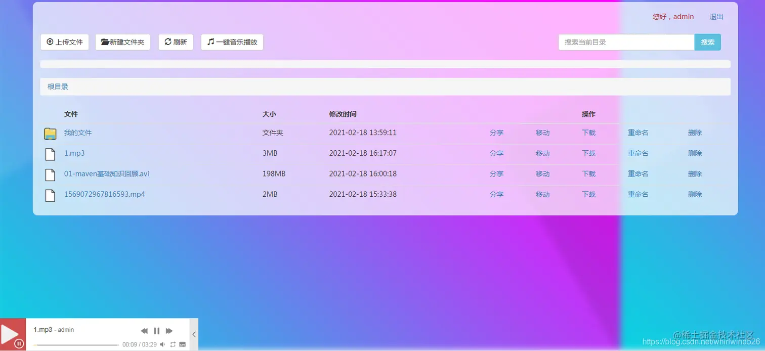 本项目基于Springboot开发实现,前端采用BootStrap开发实现,系统功能完整,交互性好,模仿百度网盘实现相关功能,比较适合做毕业设计使用,创意性强。