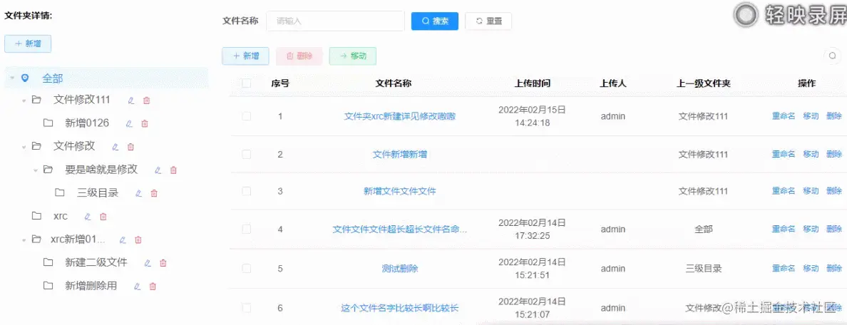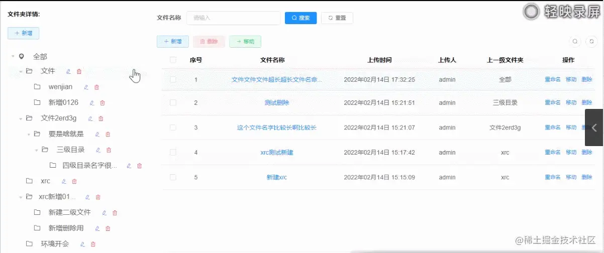 2.【删除】点击删除按钮,确认弹框后删除该文件夹