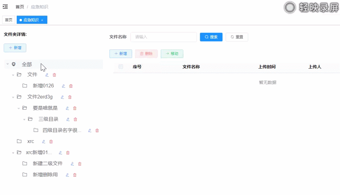 1.【新增】点击文件夹后->点击新增,会在选中的文件夹下新建文件夹目录;如果选中‘全部’或者不选,则直接在全部目录下新建文件夹目录。