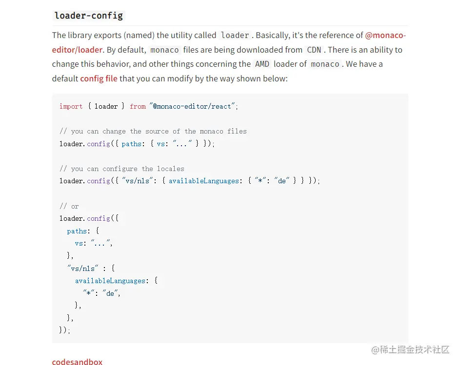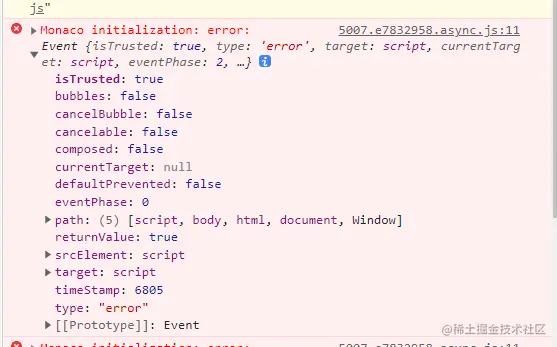 看到有一个网络请求失败,想到可能是 monaco-editor用到了某些网络资源,然后就去找node_modules,发现 monaco-editor本体实际是使用 loader.js加载的,然后 loader.js又默认使用了 CDN,所以导致整个组件都不好用。