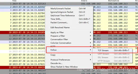 4.2、查看tcp数据流,并保存