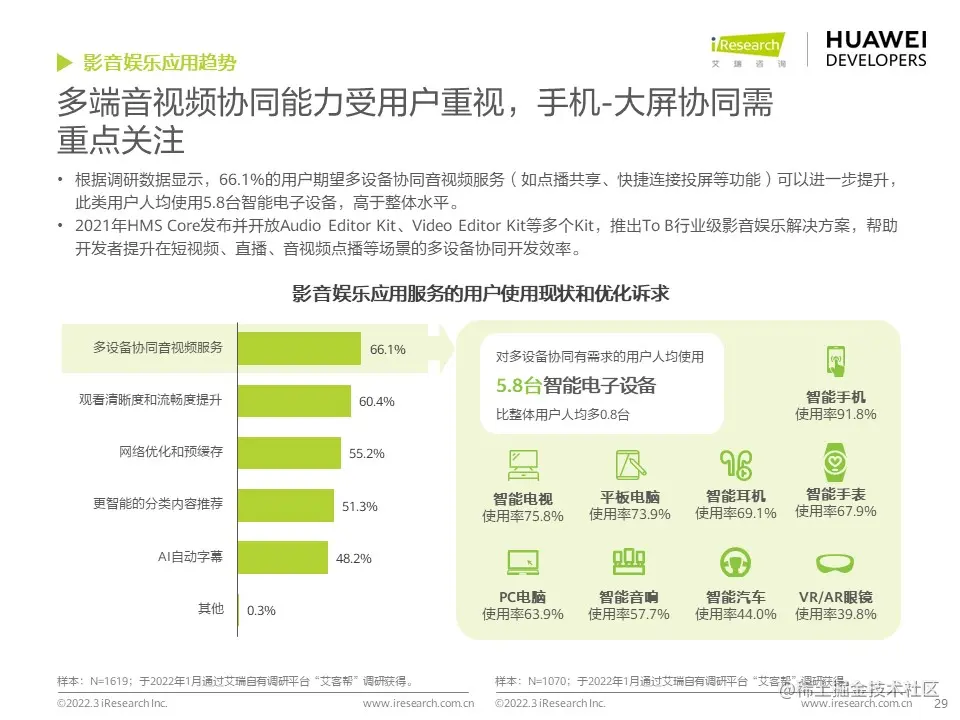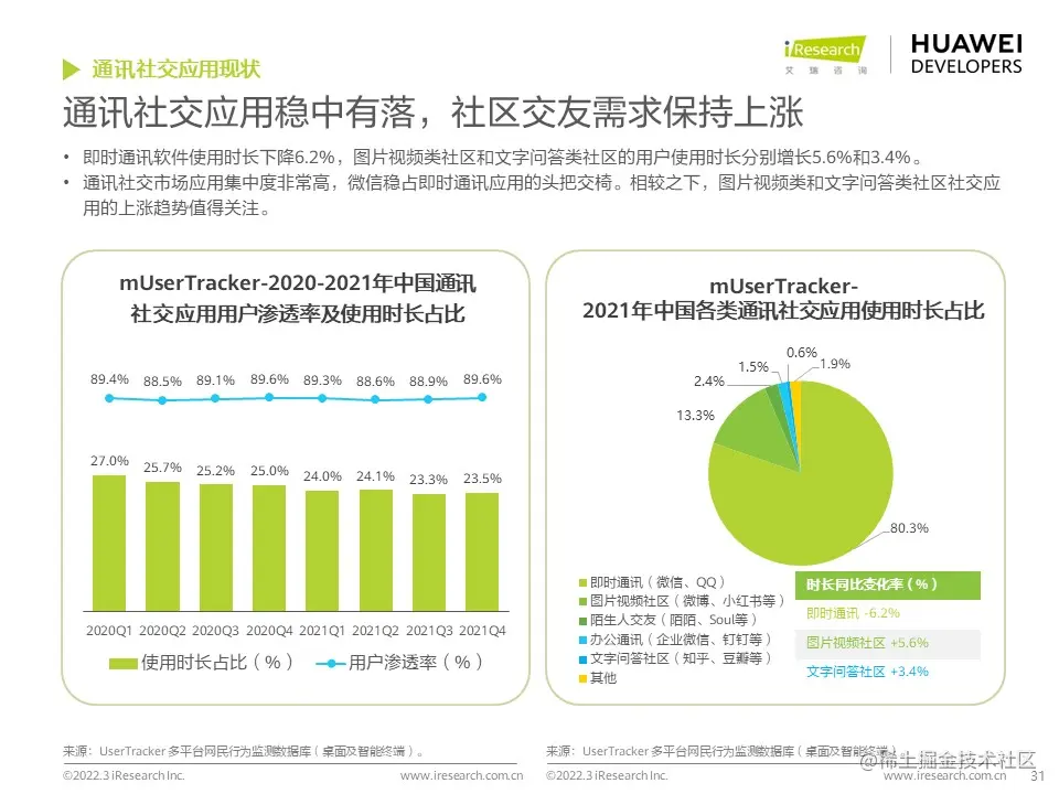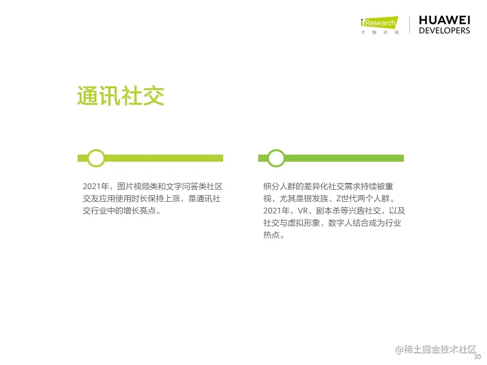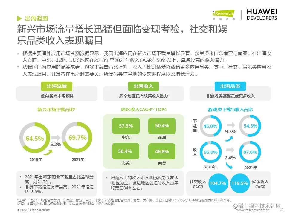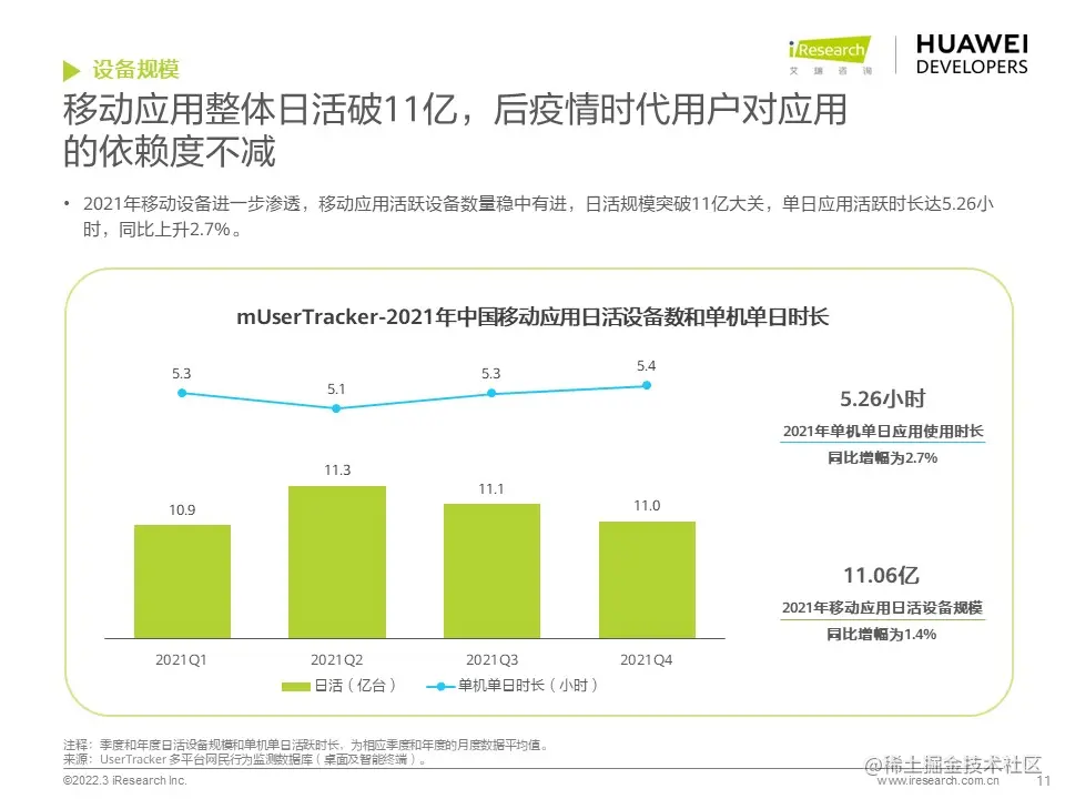 华为开发者联盟与艾瑞咨询联合发布《2022年移动应用趋势洞察白皮书》,本白皮书主要分析移动应用行业发展现状和趋势,并对影音娱乐、通讯社交、电商生活、运动健康、出行导航等细分行业场景进行分析,把握移动应用细分行业发展特色和趋势,为广大开发者的开发和运营决策提供参考。
