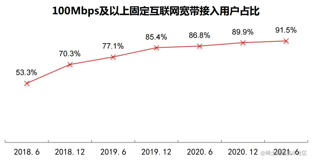 在边缘计算场景中,被提到最多的就是云边网络差且不稳定,其实国内基础网络在 2015 年开始全面升级,尤其是在“雪亮工程”全面完成之后,基础网络有一个很大的提升。上图摘自《第 48 次中国互联网络发展状况》报告,固网 100Mbps 接入占比已达 91.5%;无线网络接入已经都是 4G,5G 的优质网络。