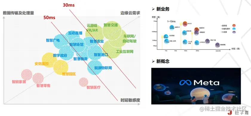 总的来说,基于网络定义的边缘计算,更多是面向消费互联业务及新型 2C 业务,将云中心的能力及数据提前下沉至边缘,除了经典的 CDN,视频语音业务外,还有今年大火的元宇宙等。