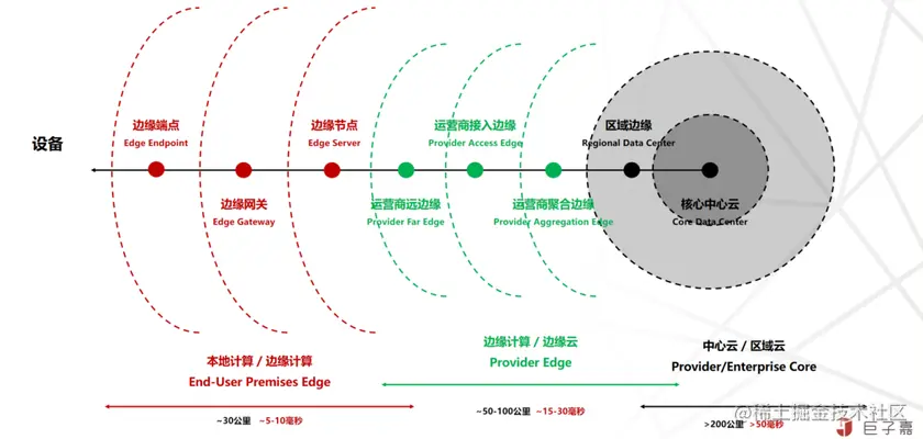 通过优化终端与云中心网络路径,将中心云能力逐渐下沉至靠近终端,实现业务就近接入访问。从中心到边缘依次分为区域云/中心云,边缘云/边缘计算,边缘计算/本地计算三大类型: