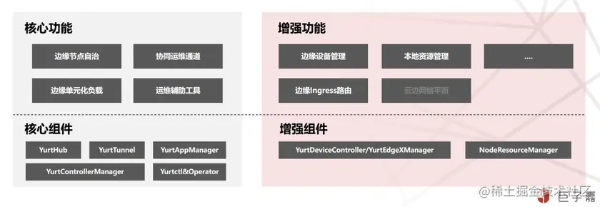 OpenYurt 所有新增功能及组件,均是通过 Addon 与 Controller 方式来实现其核心必选与可选组件如下: