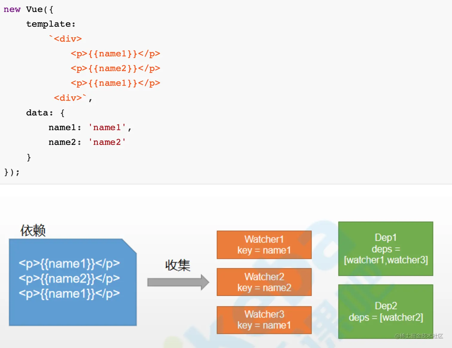 * 5、而知道多少处使用某个key,只能是是在编译compile时。watcher在 compile时 初始化update创建