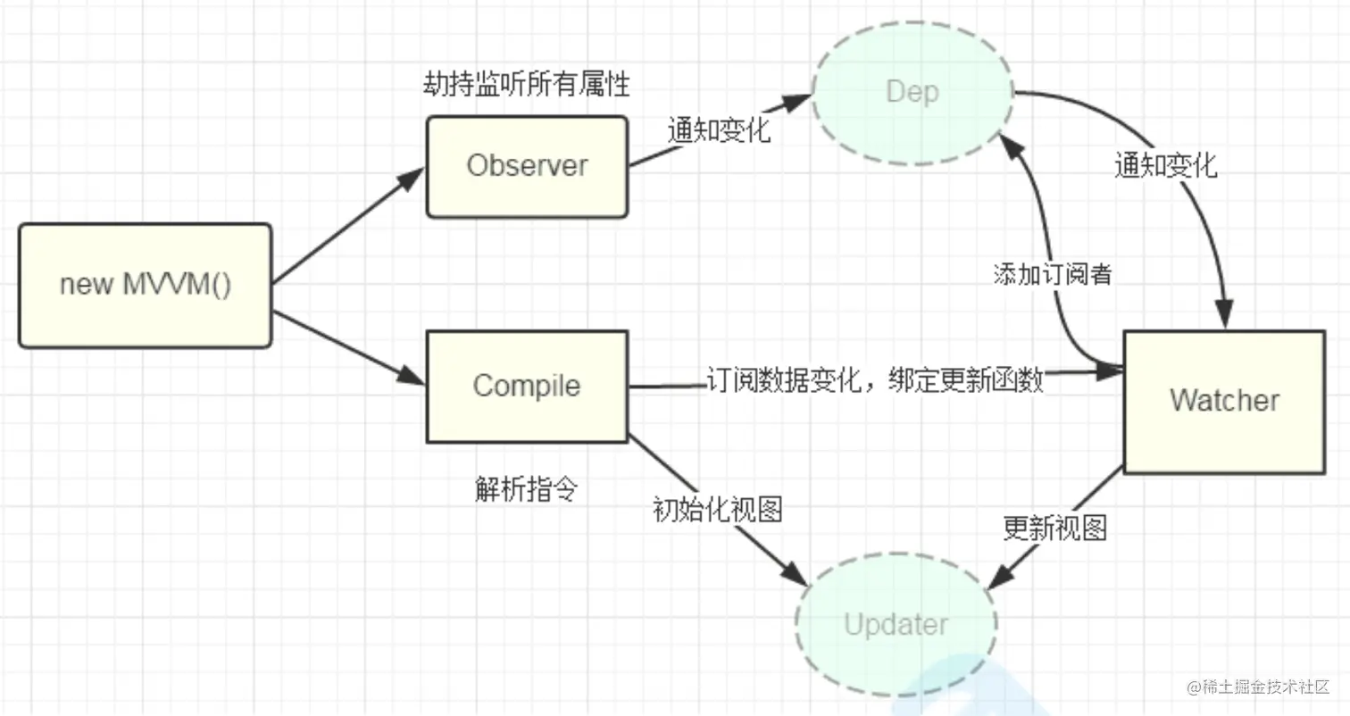 * 6、具体的 watcher push 进入 响应的 dep 队列。建立《订阅》 是在 Object.defineProperty的get方法见《关键点》