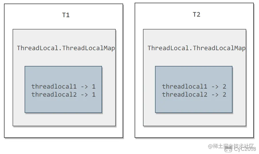 每个 Thread 都有一个 ThreadLocal.ThreadLocalMap 对象。