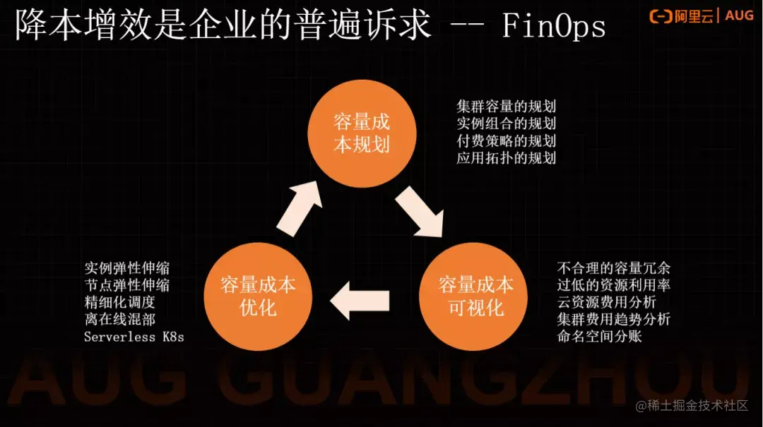 第三个话题是 FinOps,降本增效是所有企业的普遍诉求,就算这个企业在初创期,业务增长非常重要,但是对于 IT 部门或预算部门来讲,降本增效依然非常重要。