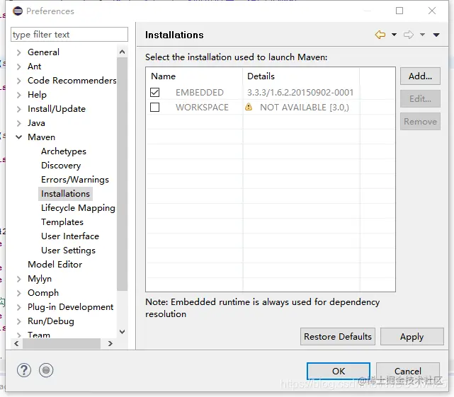 然后 Maven-->Installations-->Add ,打开下图,配置之前安装好的maven路径,点击finish: