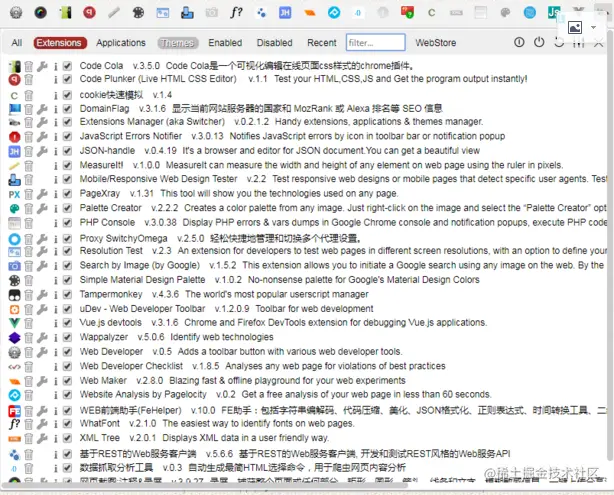 同上面的功能一样也是管理各种应用和插件的