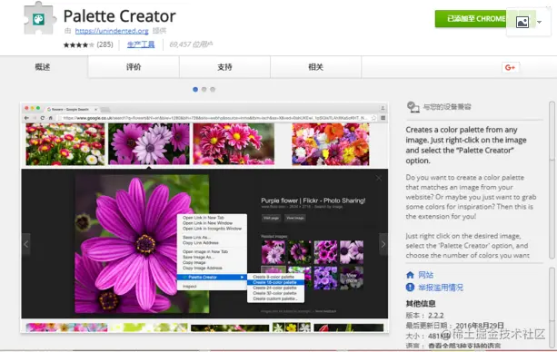选择一个图片,右击选择该功能,可以取出图片所有颜色卡(FE直接可以页面取色)
