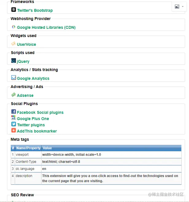 可以检测网站框架,而且还可以检测SEO