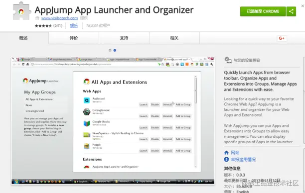 安装了许多应用之后肯定是需要工具管理的。 AppJump能从工具栏下拉菜单上快速找到并启动应用程序和其他插件。AppJump的一个很酷的功能是能将应用程序和插件组织进入不同组。例如,可以轻松将个人插件同工作插件隔开,以进行更有效的时间管理。