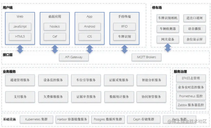 - 负载均衡和高可用性。 弹性部署,部分关键业务能满足“单点多活”、“云-边”异地多活等场景,为停车场业务提供了负载均衡和高可用性。