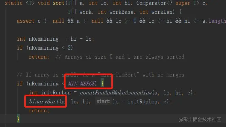 - ComparableTimSort.sort():即Timsort排序。