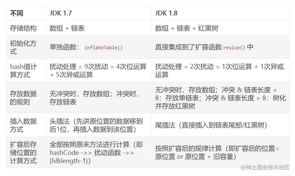 45. HashMap在JDK1.7和JDK1.8中有哪些不同?