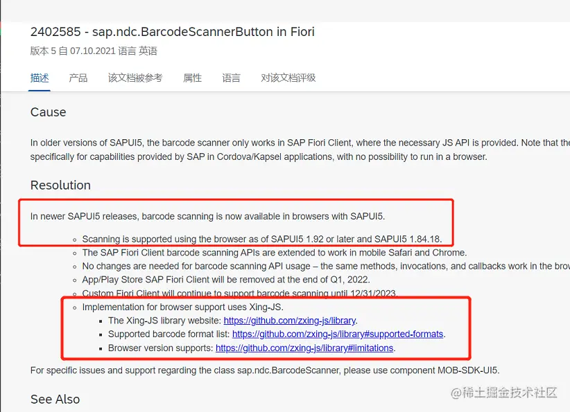 可以尝试这个 note:2402585 - sap.ndc.BarcodeScannerButton in Fiori