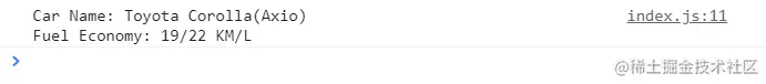 console.log("Car Name: Toyota Corolla(Axio)\nFuel Economy: 19/22 KM/L");