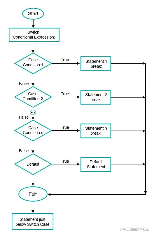 语句_switch_语句会评估括号()之间的变量或表达式。它将其与switch语句主体中的每个案例进行比较。如果第一种情况为真,那么就执行其主体中的语句。如果第二种情况为真,则执行第二种情况主体中的语句。break和default语句是可选的。在default下出现的语句只有在所有的case语句为false的情况下才会被执行。break语句用于在一个case与表达式匹配后退出 switch 语句 的主体,一旦表达式匹配了一个case。如果我们不使用break语句,那么 开关 语句将针对每个case评估表达式,即使其中一个case是真的。