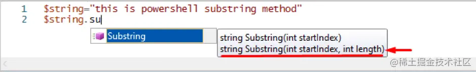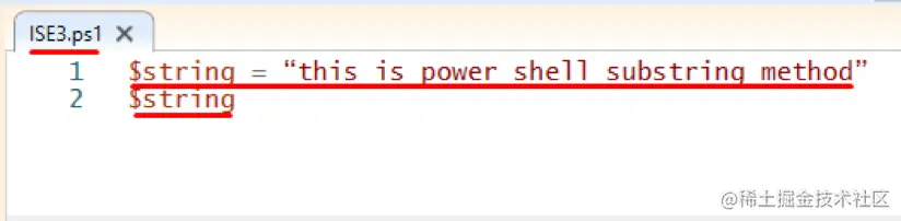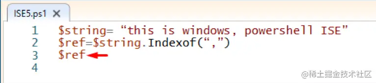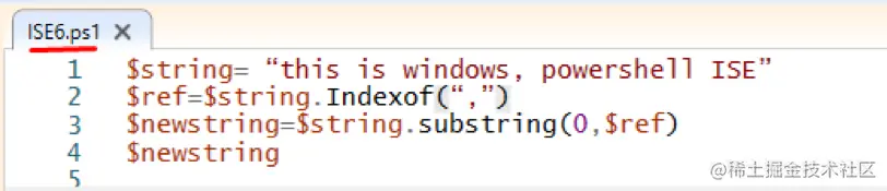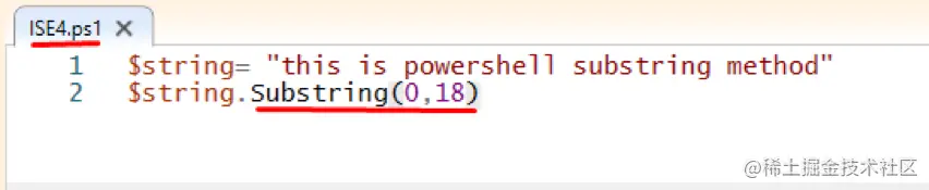 我们创建了另一个脚本,"ISE4**.ps1"** 两个值都被传递给substring方法,如下图所示。