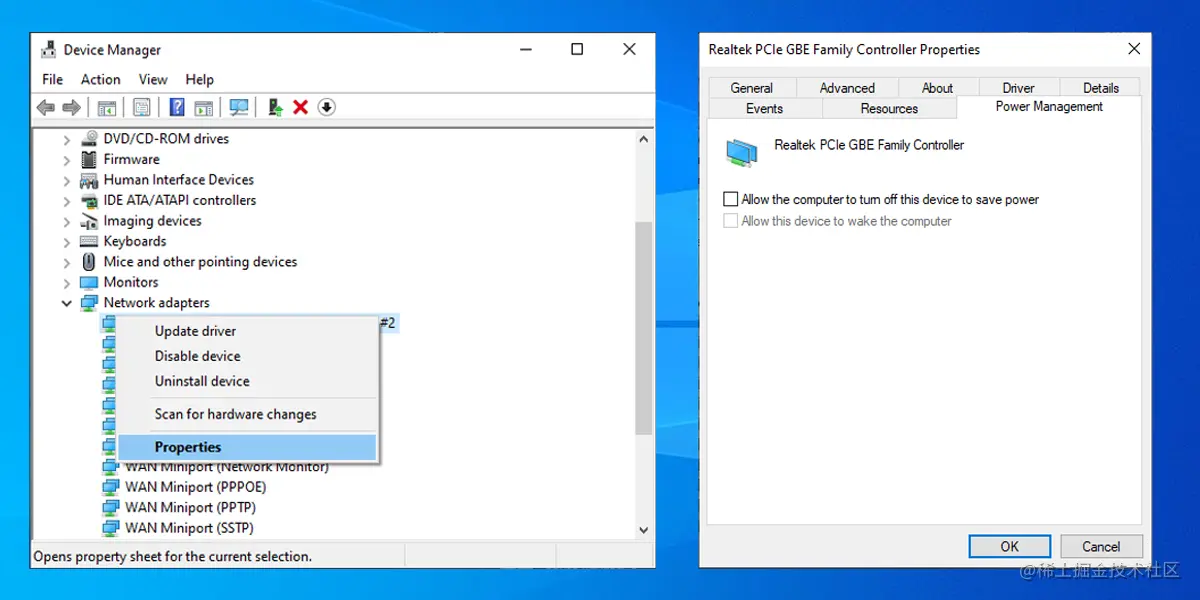 - 取消勾选 "允许计算机关闭此设备以节省电力"。