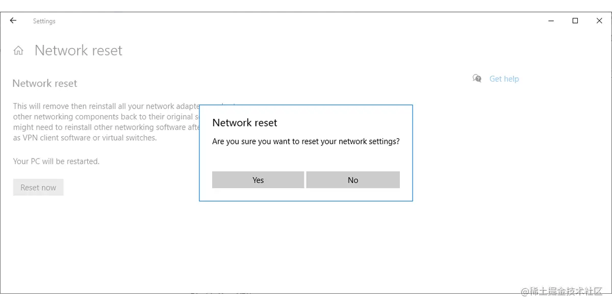 **注意:**重置网络后,你将不得不重新安装VPN或你正在使用的任何虚拟交换机。