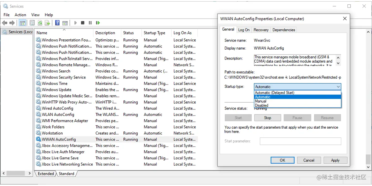 - 将启动 类型设置为自动。