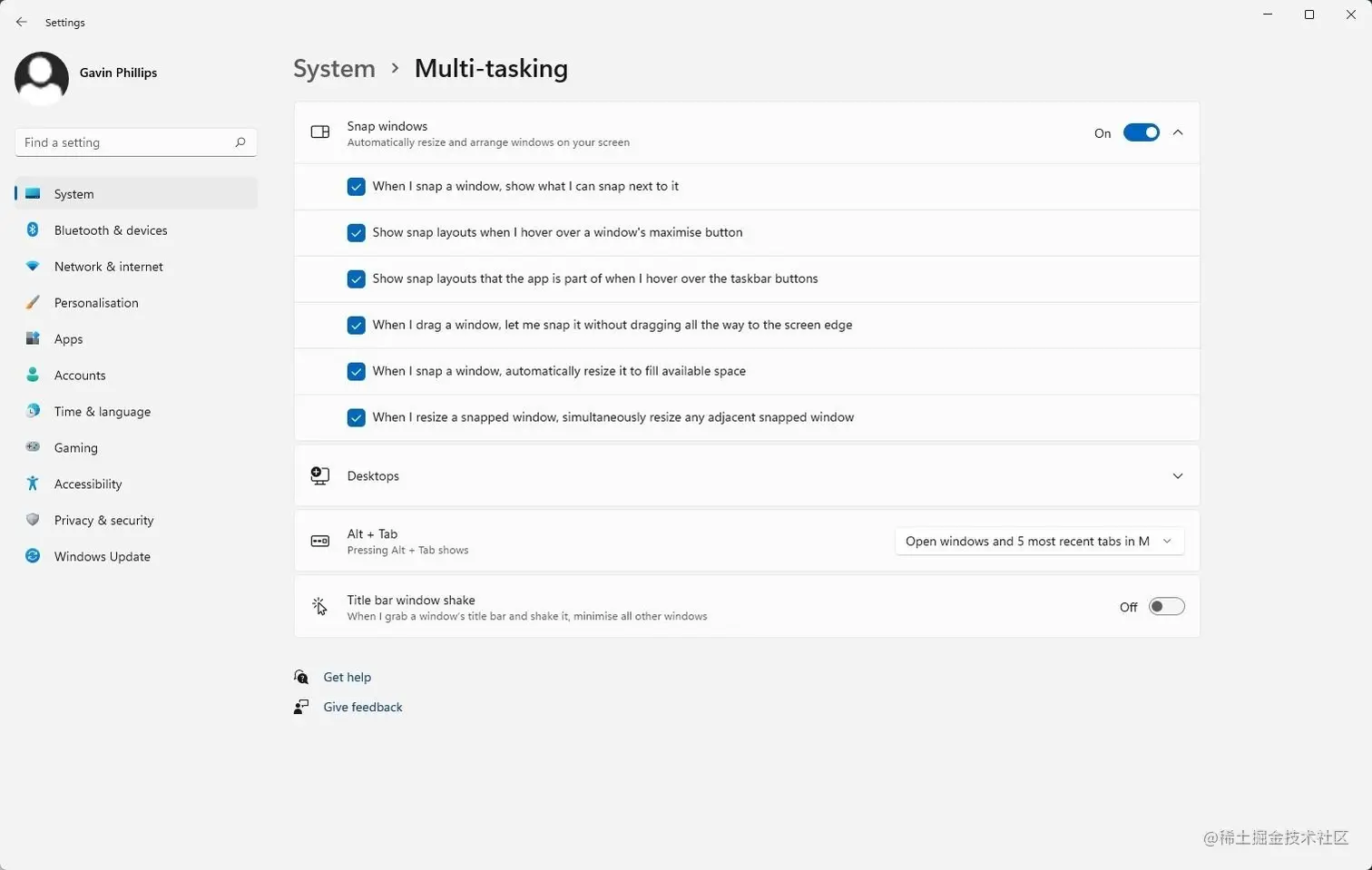 有几个Windows 11 Snap Layouts选项可以通过Windows设置应用程序进行自定义。