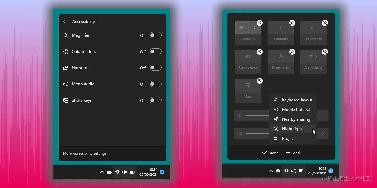 将快速菜单及其设置从Windows通知中分离出来也是一项改进,当你拿起设置时可以节省屏幕空间。因此,快速菜单是对通知和快速访问日历进行更广泛改造的一部分。这些菜单中的每一个现在都作为自己的功能出现,而不是捆绑在一个大面板中。