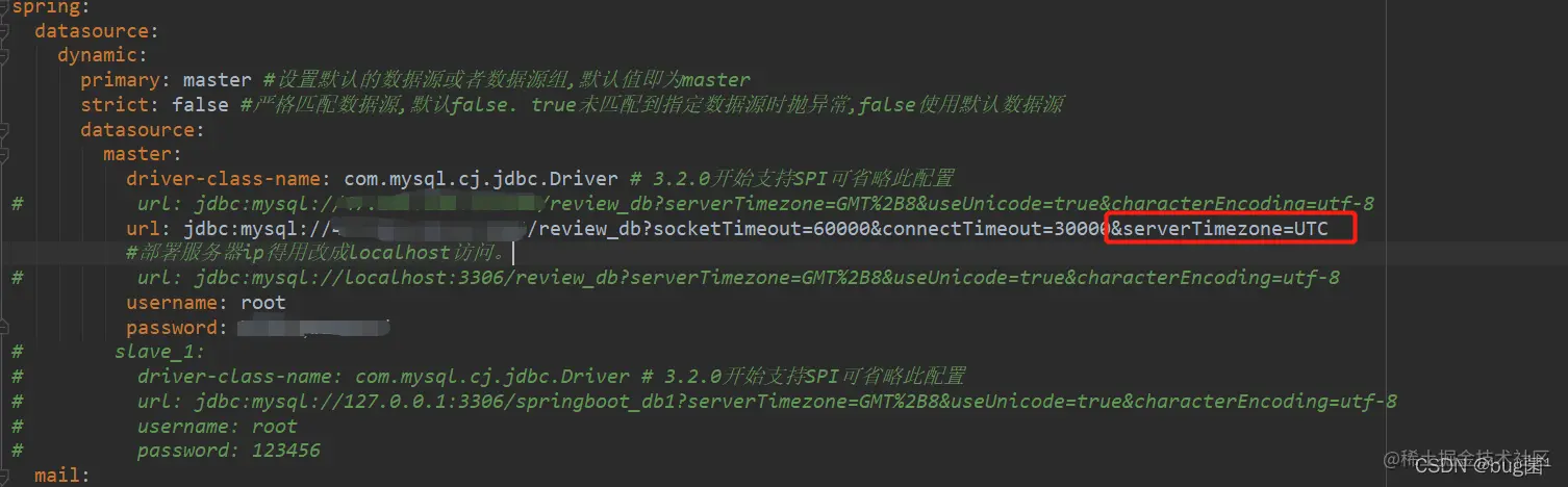 我的数据库连接配置竟然变了!!被谁给改掉了。查看git提交记录才发现,是被我昨晚定位另一个bug临时给改了,忘了把注释放开。