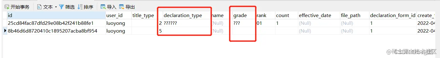 第二步:排查一下,数据库数据保存情况,是否中午变问号了?