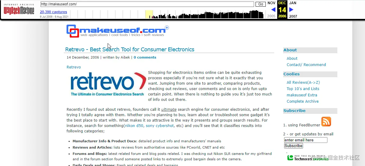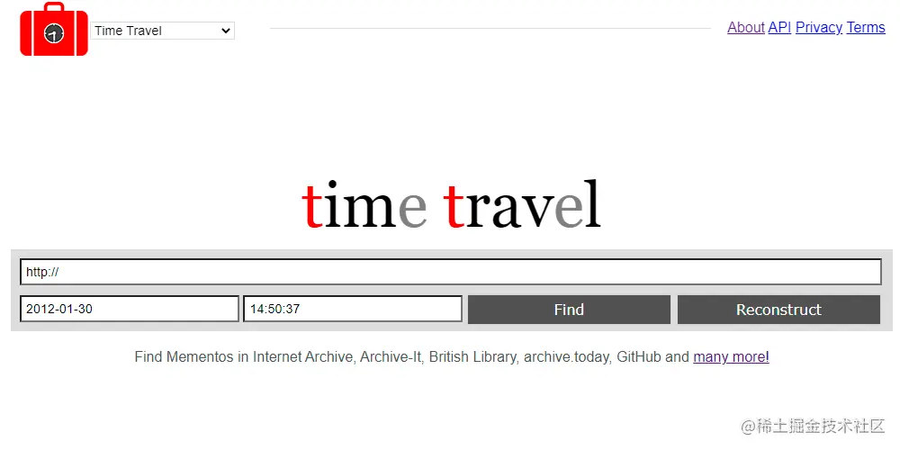 作为一个网络档案的聚合器,Memento Time Travel让你在记忆的长河中旅行,查看旧网站。Memento要求你输入任何URL和过去的一个时间。然后,它在几十个在线档案库中搜索所要求的网页,包括上面提到的那些,并显示最接近输入日期的快照。