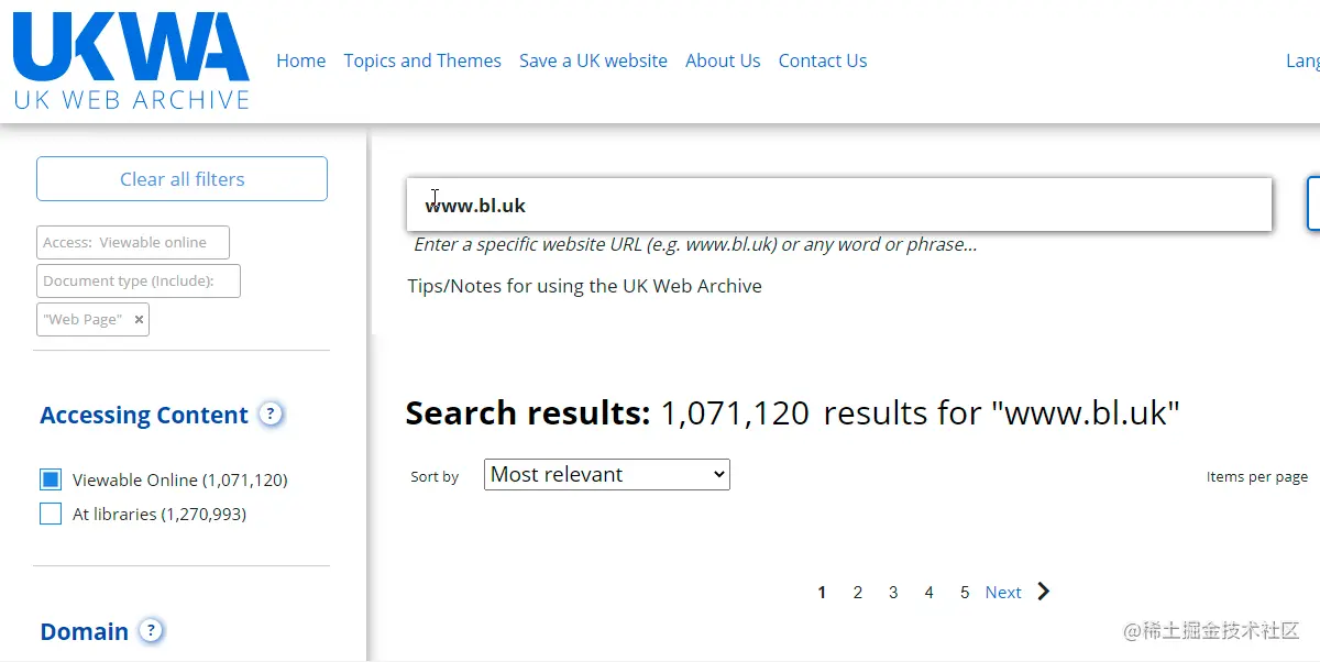 与其他大多数工具不同,UKWA允许你按短语、关键词以及URL进行搜索。虽然有些内容只能在图书馆馆舍内查看,但你可以在网上找到大量的网页。