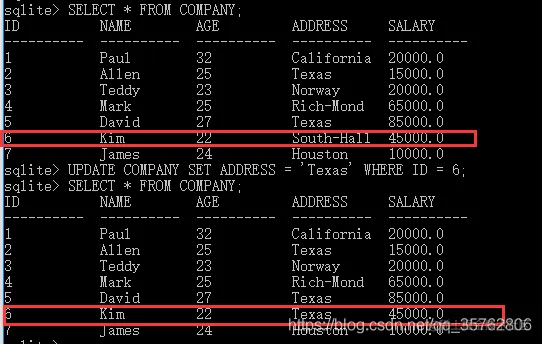 UPDATE COMPANY SET ADDRESS = 'Texas' WHERE ID = 6;