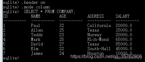 三、对SQLite数据库的一些常用的语法,和SQL SERVER 的语法一致的,只是在cmd下运行