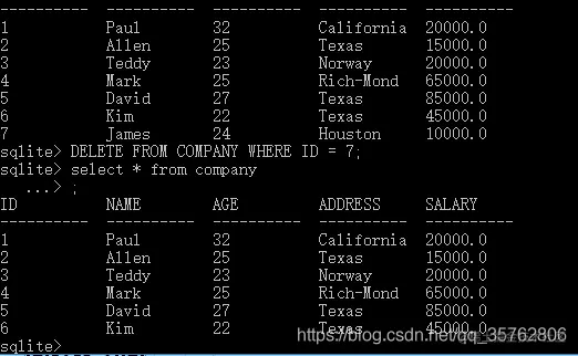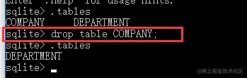 6、使用SQLite 命令中的 DROP TABLE 语句用来删除表定义及其所有相关数据、索引、触发器、约束和该表的权限规范。