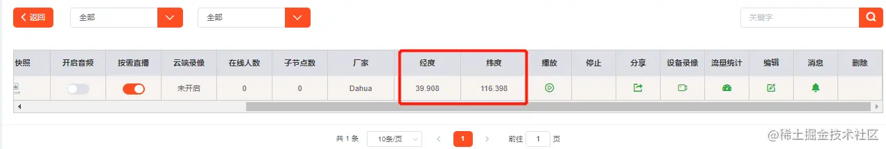 当有经纬度时,在地图中对应地点即可展示播放: