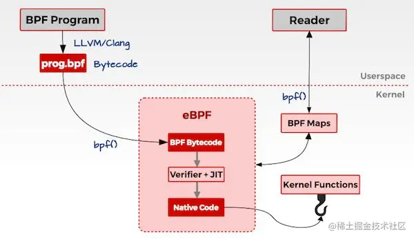 使用 JIT(Just In Time)技术将 eBPF 字节编译成本地机器码(Native Code)。