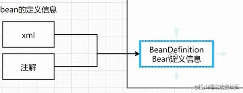 在启动的时候会加载跟解析xml文件跟注解类,加载和解析完成后会把bean对象放到容器里的一个对象里面叫BeanDefinition,它包含了很多bean的定义信息
